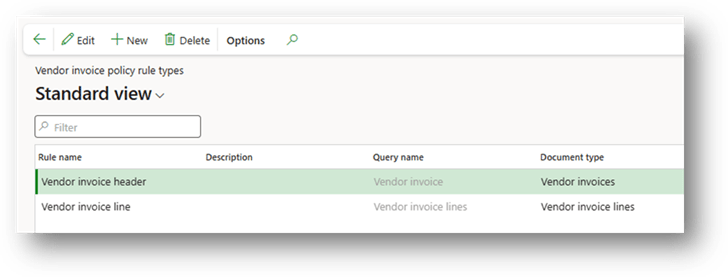 Go to : Accounts payable> Policy setup> Vendor invoice policy rule type.