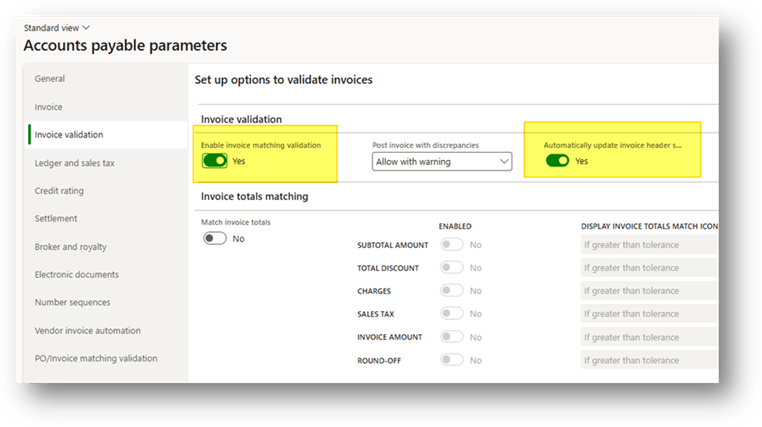 Go to : Accounts payable> Policy setup> Vendor invoice policies