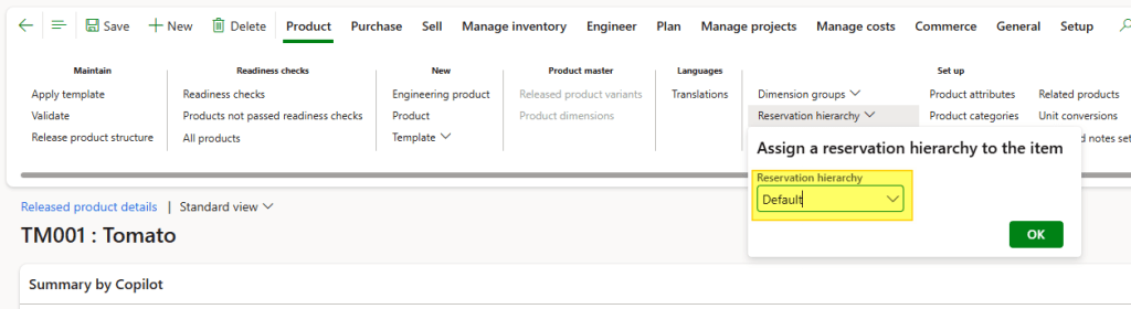 - Reservation hierarchy: Hierarchy warehouse dimension to use for the reservation