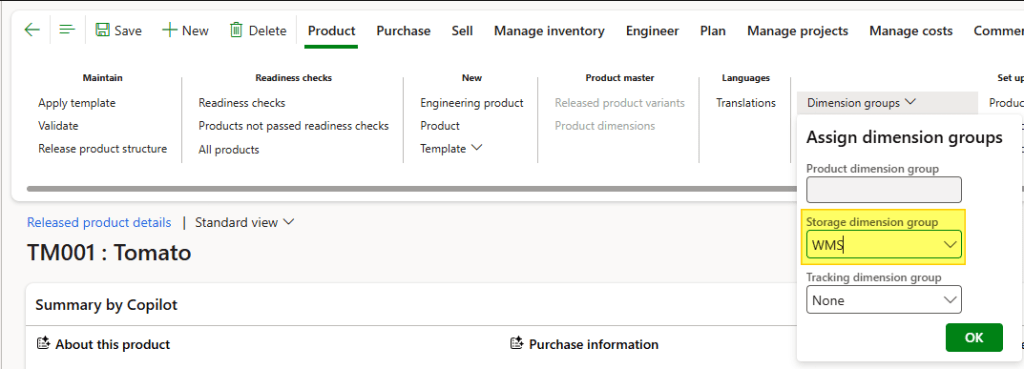 There are several information to insert when we release a product. This article explain the information to insert the information to fill in to run the WMS: