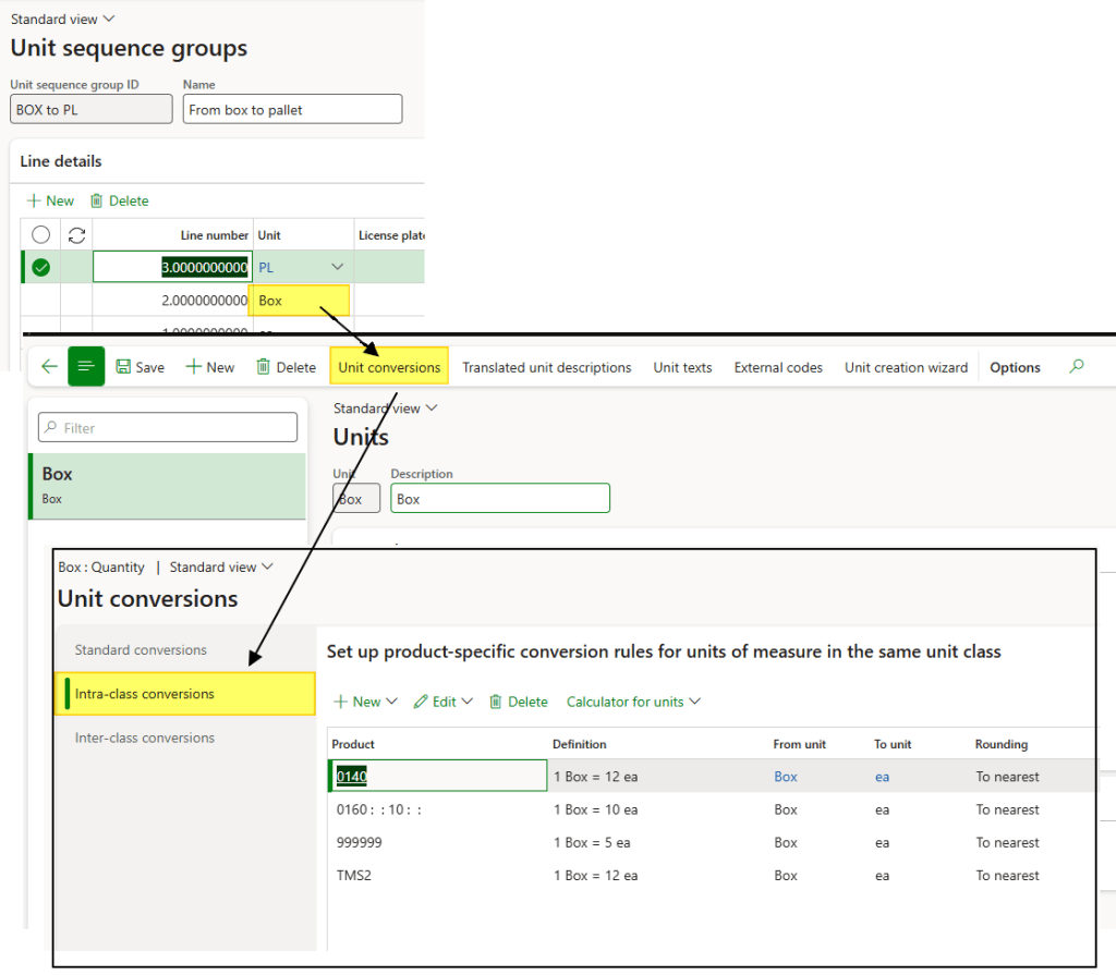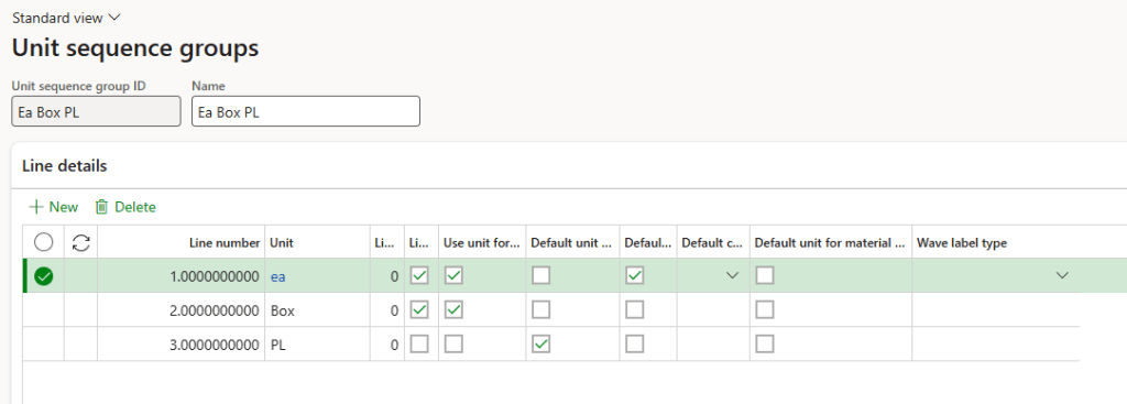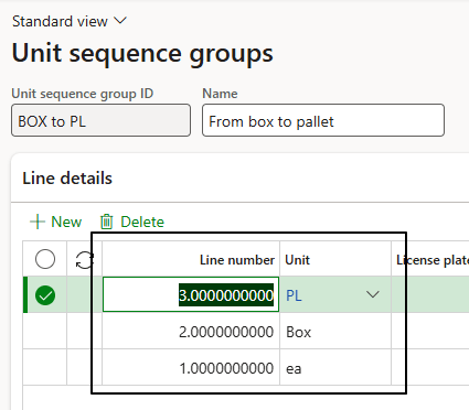 Back to our unit sequence groups we can go detailly on the configuration of the warehouse policies for each unit of measure: