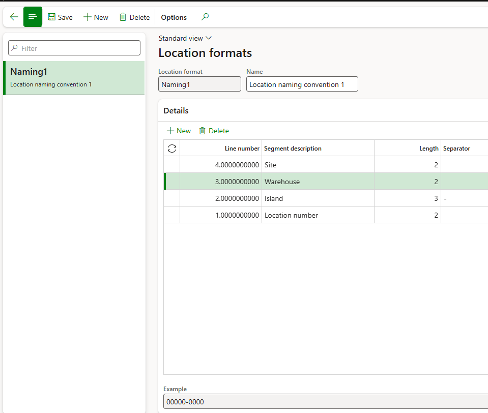 Go to: Warehouse management> Setup> Warehouse> Location formats.