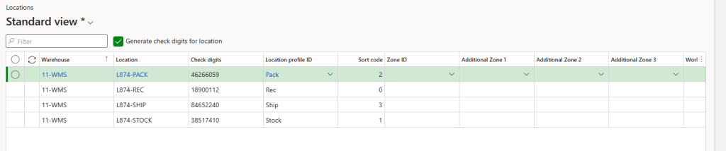 Create the locations for our warehouse and add them manually in the Location module, including the ID for each one. Using short location codes helps the WMS calculate the most efficient item movements.
